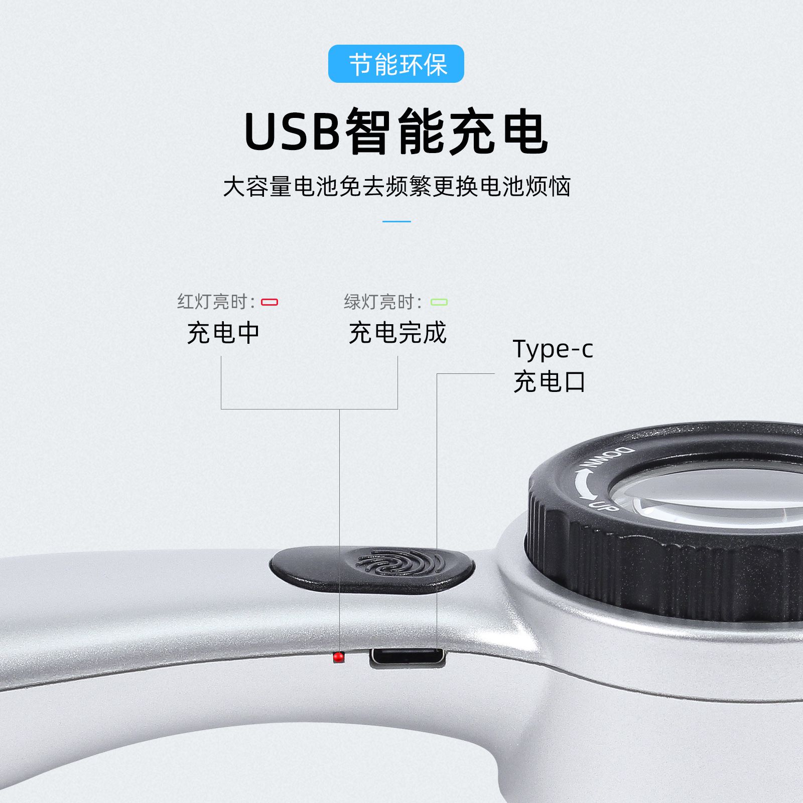 Лупа с универсальной подсветкой, увеличительное стекло с ручкой 8690, диаметр: 35 мм, увеличение: 30X