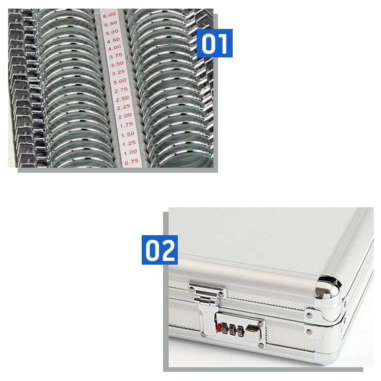 Наборы пробных очковых линз с оправой на 158 линз. Предназначен для обследования отклонений зрения, например, миопия, гиперметропия, астигматизм и пресбиопия, для обследования страбизма и цветовой слепоты. Набор пробных очковых линз используется в офтальмологических отделениях больниц, поликлиник, в оптических магазинах. Удобен в применении, как в стационарах, так и в условиях передвижных кабинетов.