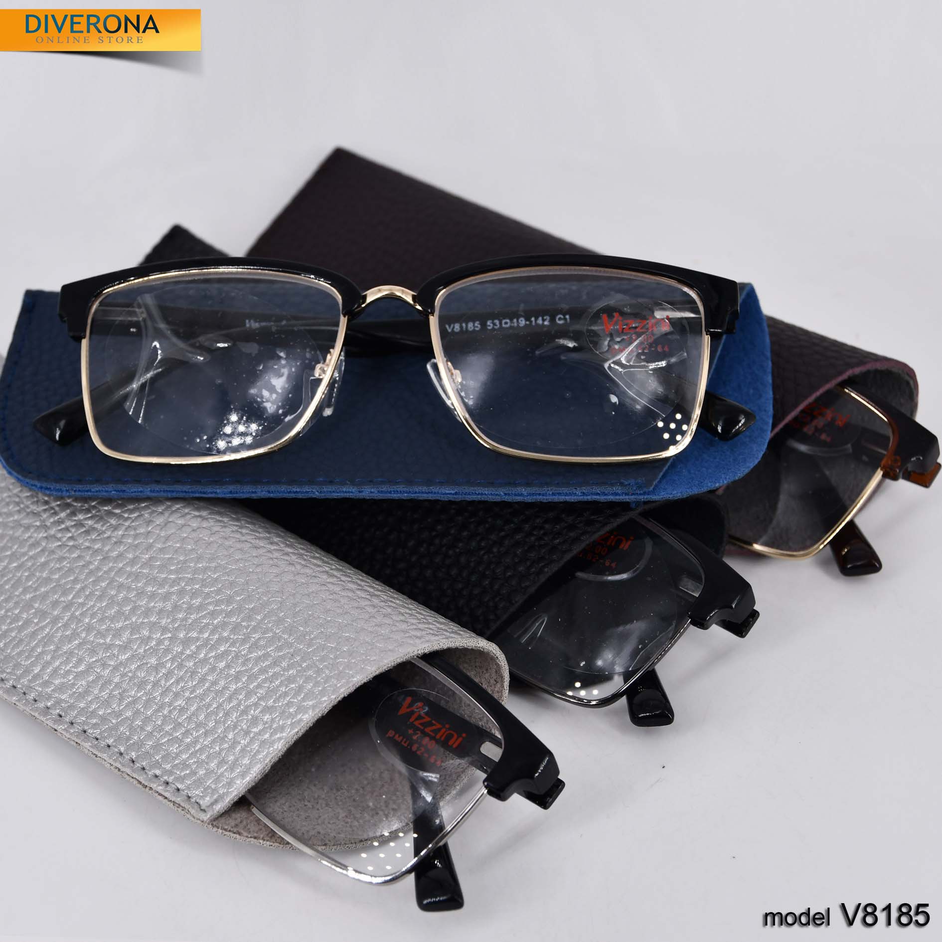- Package: 16 pieces in box, 3 colors, 1 diopter (gold = 9 pcs, black = 3 pcs, gray = 4 pcs)