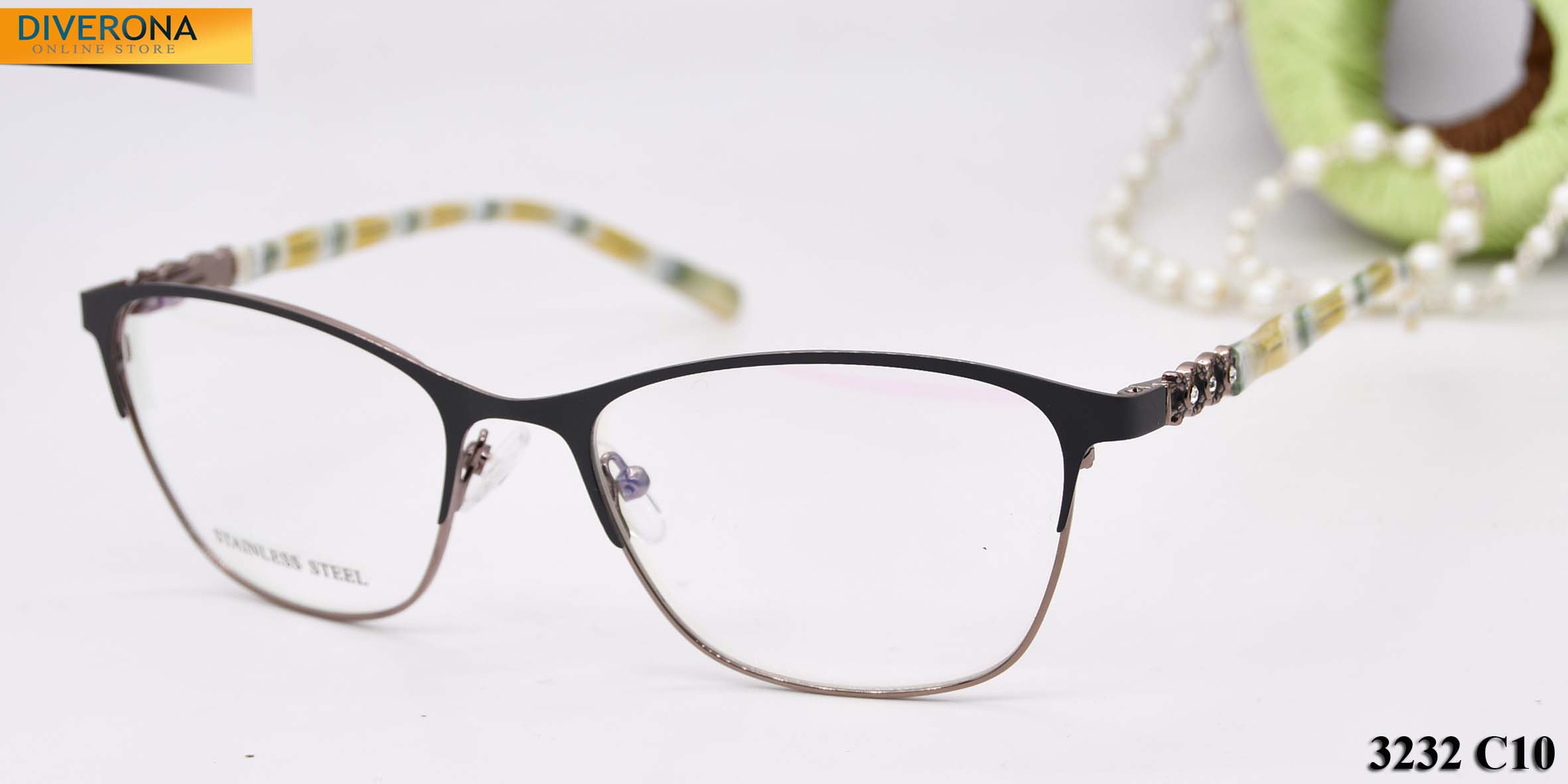 Metal frames for glasses. The material is stainless steel. The frames keep their shape well, at the same time they are flexible. High quality. Frames have good tactile properties and resistant to damage, they are lightweight and hypoallergenic. Many of models are decorated with rhinestones, have elegant temples and flex hinges. Fashionable design. This frames collection of high quality, passes piece control. In our store goods of this category have a low price for wholesale. European Conformity.
