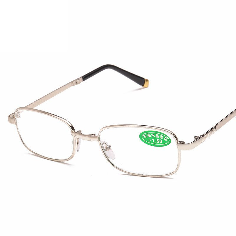Folding metal reading glasses JY折叠铜头水晶 with case, diopters from +1.00 to +4.00, RMC=62-64