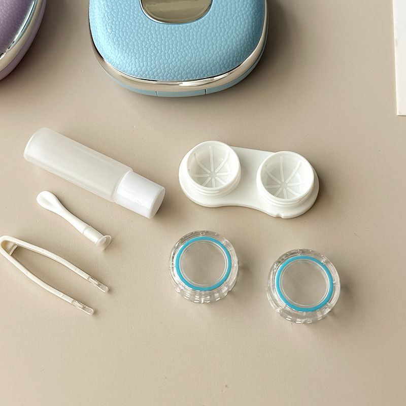 - Комплект: 2 контейнера для линз, пинцет, палочка для чистки линз, зеркало, флакончик для раствора