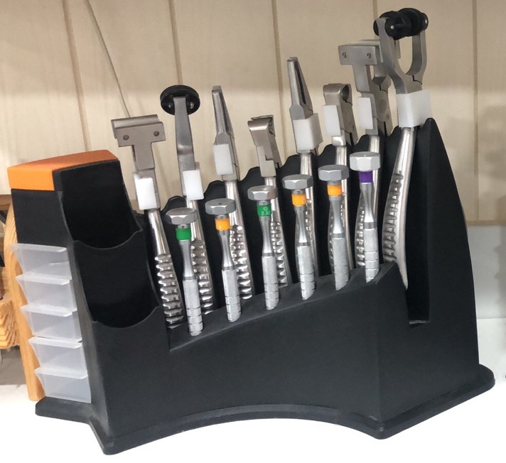 - 6 отверток (крестовая Ø1.5 мм, прямой шлиц Ø1.6 мм, прямой шлиц Ø1.8 мм, крестовая Ø1.8 мм, torx Ø2.32 мм, шестигранный шлиц Ø2.57 мм)