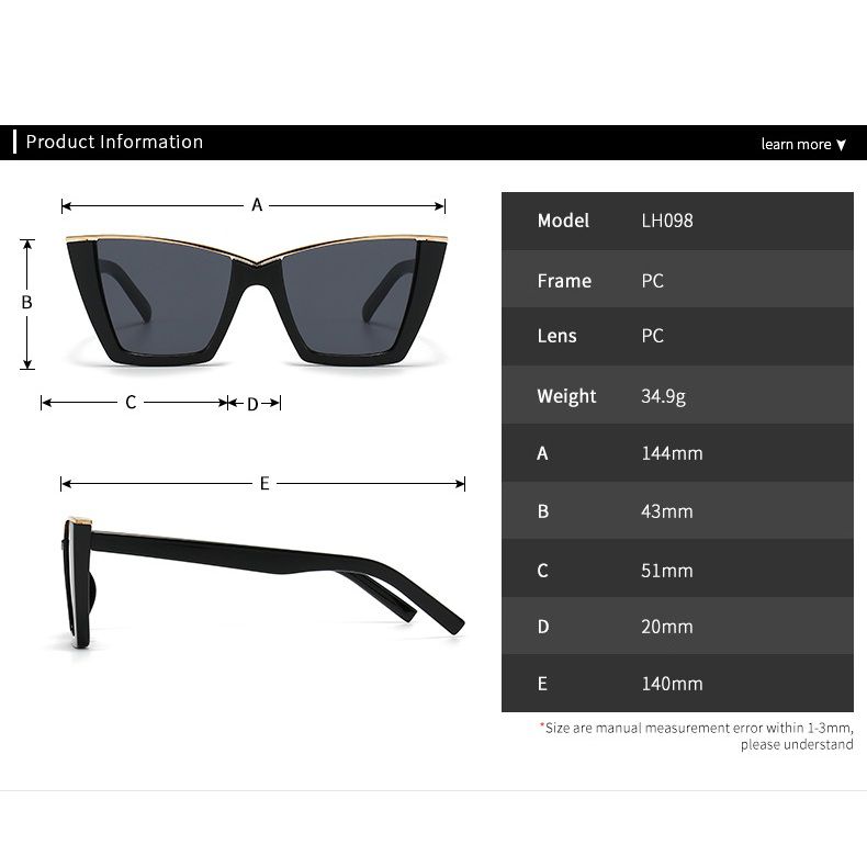 Пластиковые женские солнцезащитные очки с формой кошачий глаз 098-EL