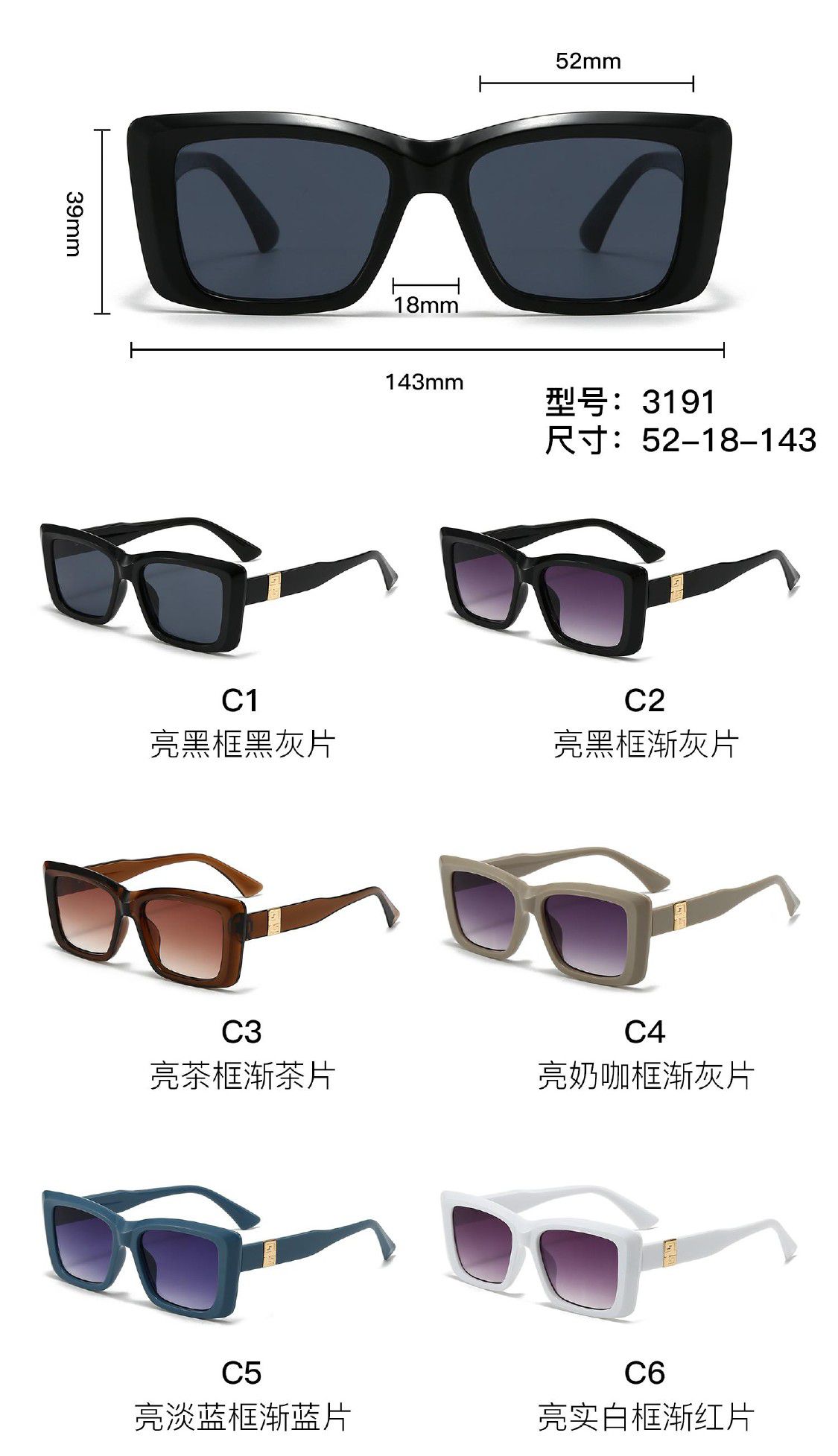 Солнцезащитные пластиковые очки из поликарбоната с пластиковым шарниром 3191W