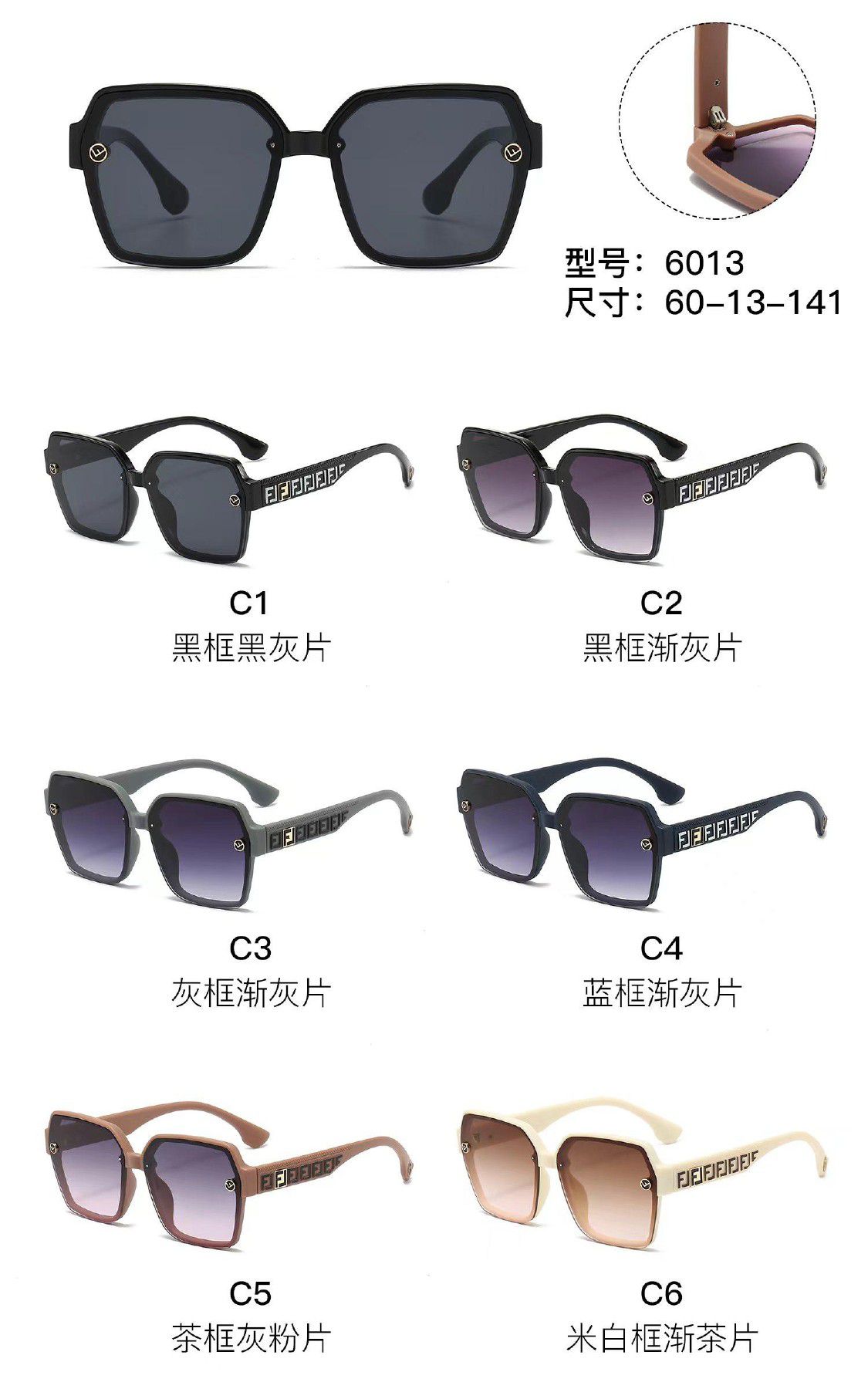 Солнцезащитные пластиковые очки из поликарбоната с металлическим шарниром 6013W