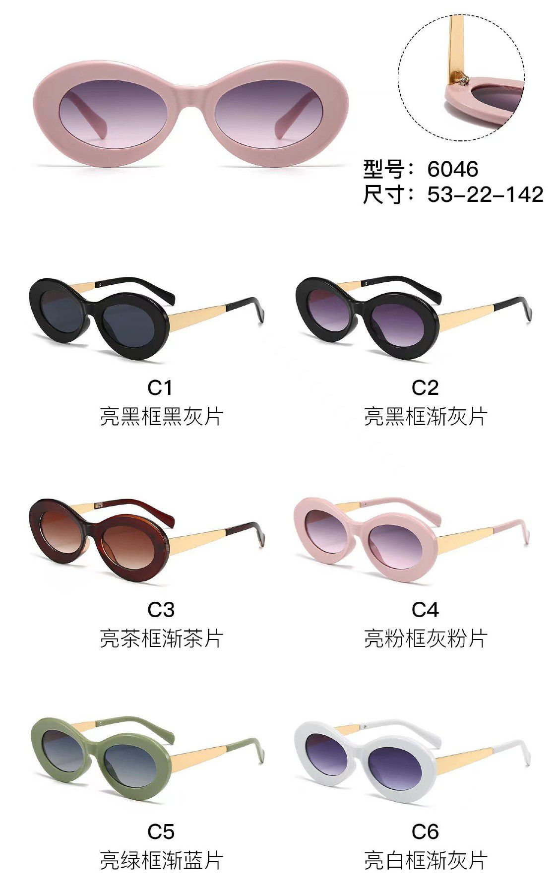 Солнцезащитные пластиковые очки из поликарбоната с металлическим шарниром 6046W