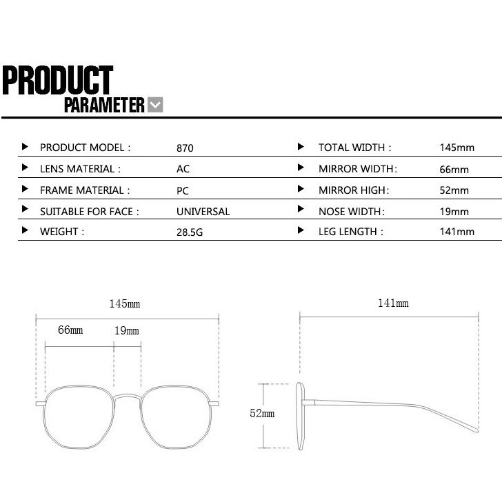 - Размер: ширина линзы - 66 мм, мост - 19 мм, длина заушника - 141 мм