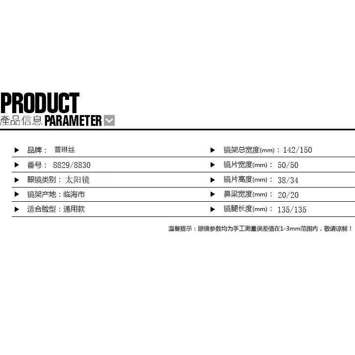 - Размер: ширина линзы - 50 мм, мост - 20 мм, длина заушника - 142 мм