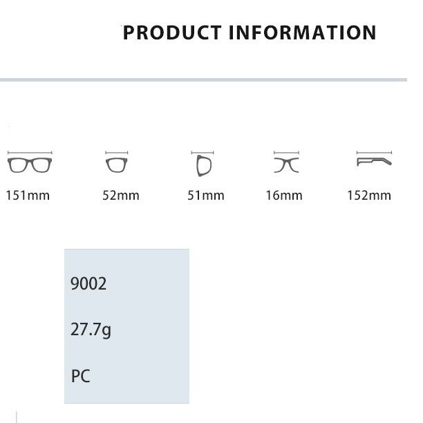 - Размер: общая ширина - 151 мм, ширина линзы - 52 мм, высота линзы - 51 мм, мост - 16 мм, длина заушника - 152 мм
