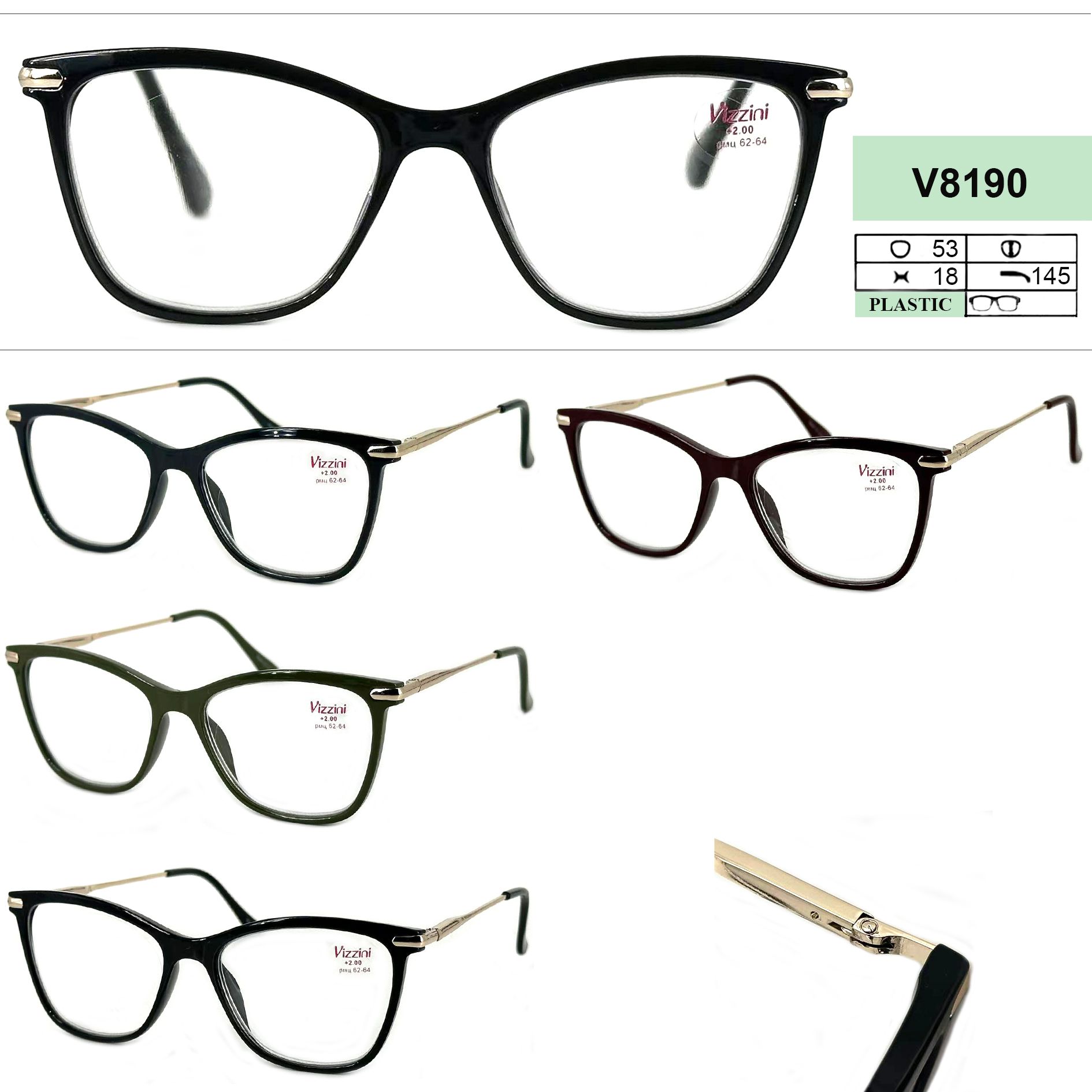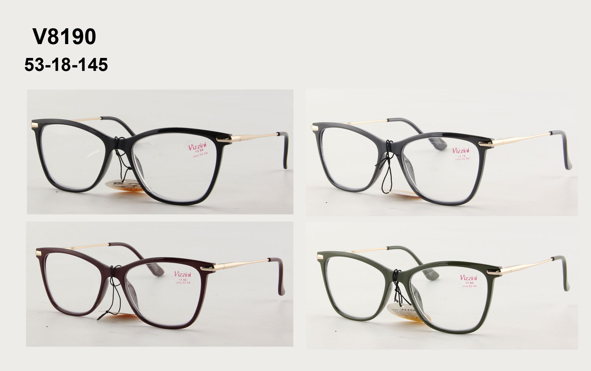 Очки готовые женские в пластиковой оправе Vizzini V8190, диоптрии от +1.00 до +4.00 (шаг 0.25); от -1.00 до -4.00 (шаг 0.5)