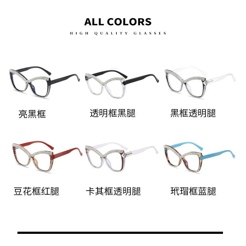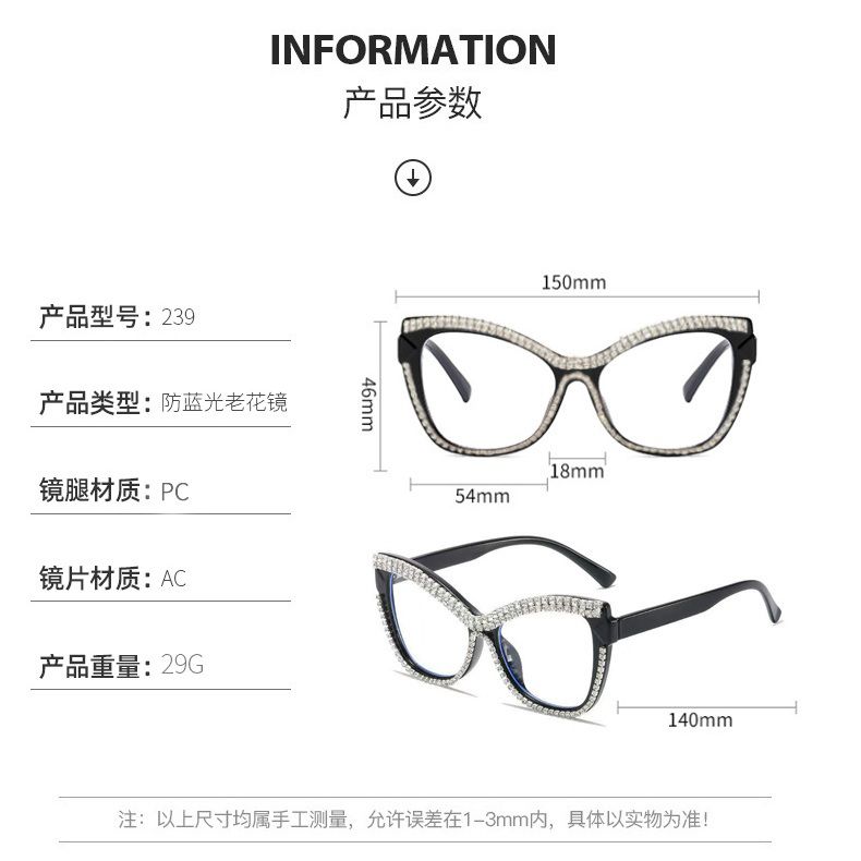 Очки для чтения женские пластиковые из поликарбоната с защитой Blue Ray Cut, флексом и стразами KY239镶钻款, диоптрии от 0.00 до +4.00