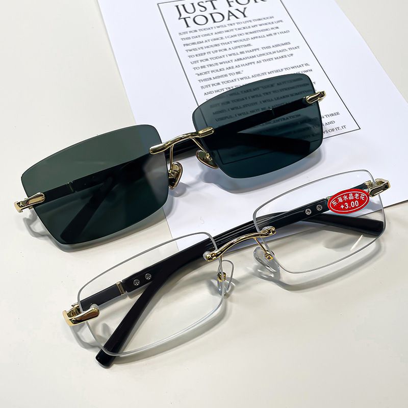 Очки металлические для чтения 水晶老花镜 со стеклянными линзами, диоптрии от 0.00 до +4.00, РМЦ=62-64