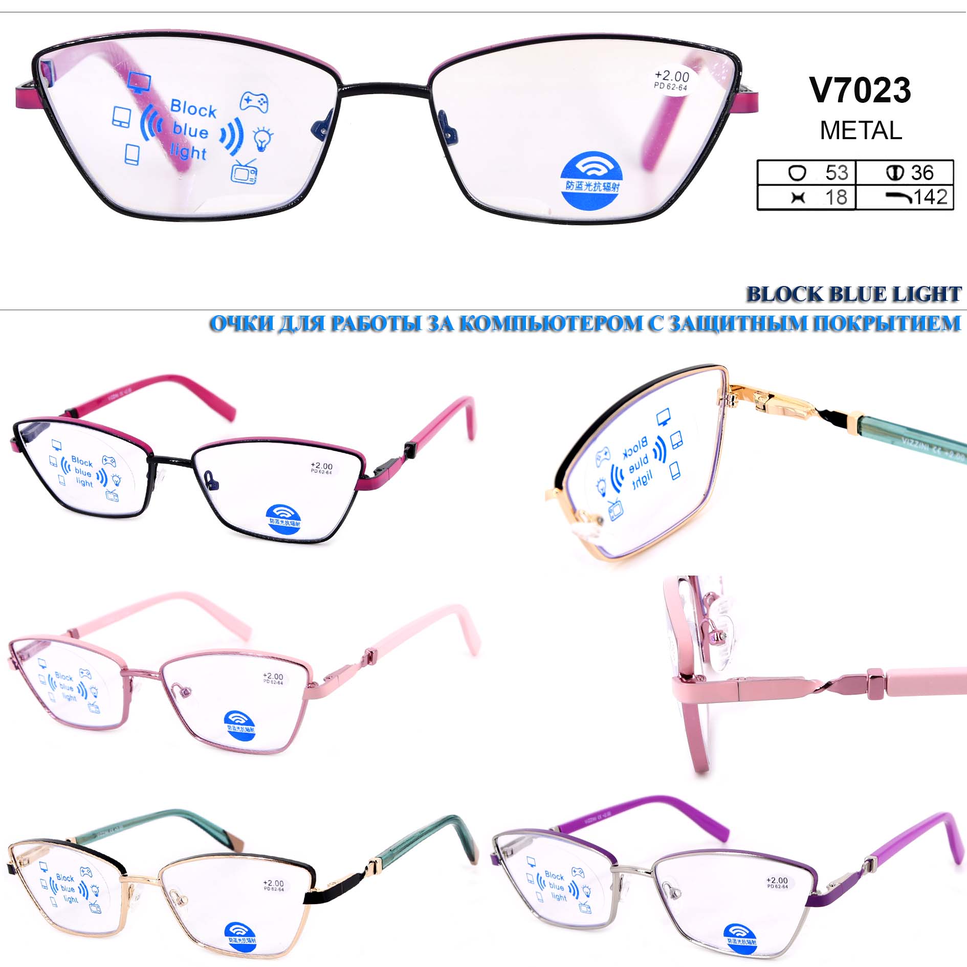 Очки женские металлические с флексами Vizzini V7023 BLOCK BLUE LIGHT, диоптрии +0,75 до +5,00 (шаг 0,25); -1,00 до -8,00 (шаг 0,25)