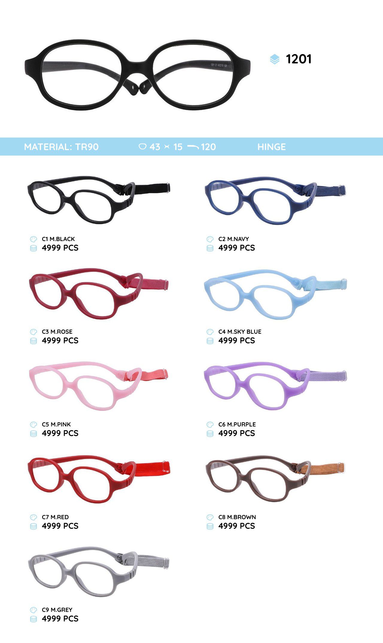 Оправа для очков пластиковая из материала TR90 детская 1201TR