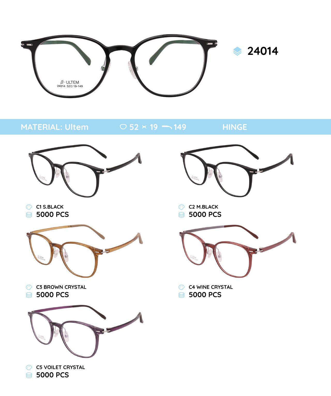 Оправа для очков пластиковая из материала Ultem 24014