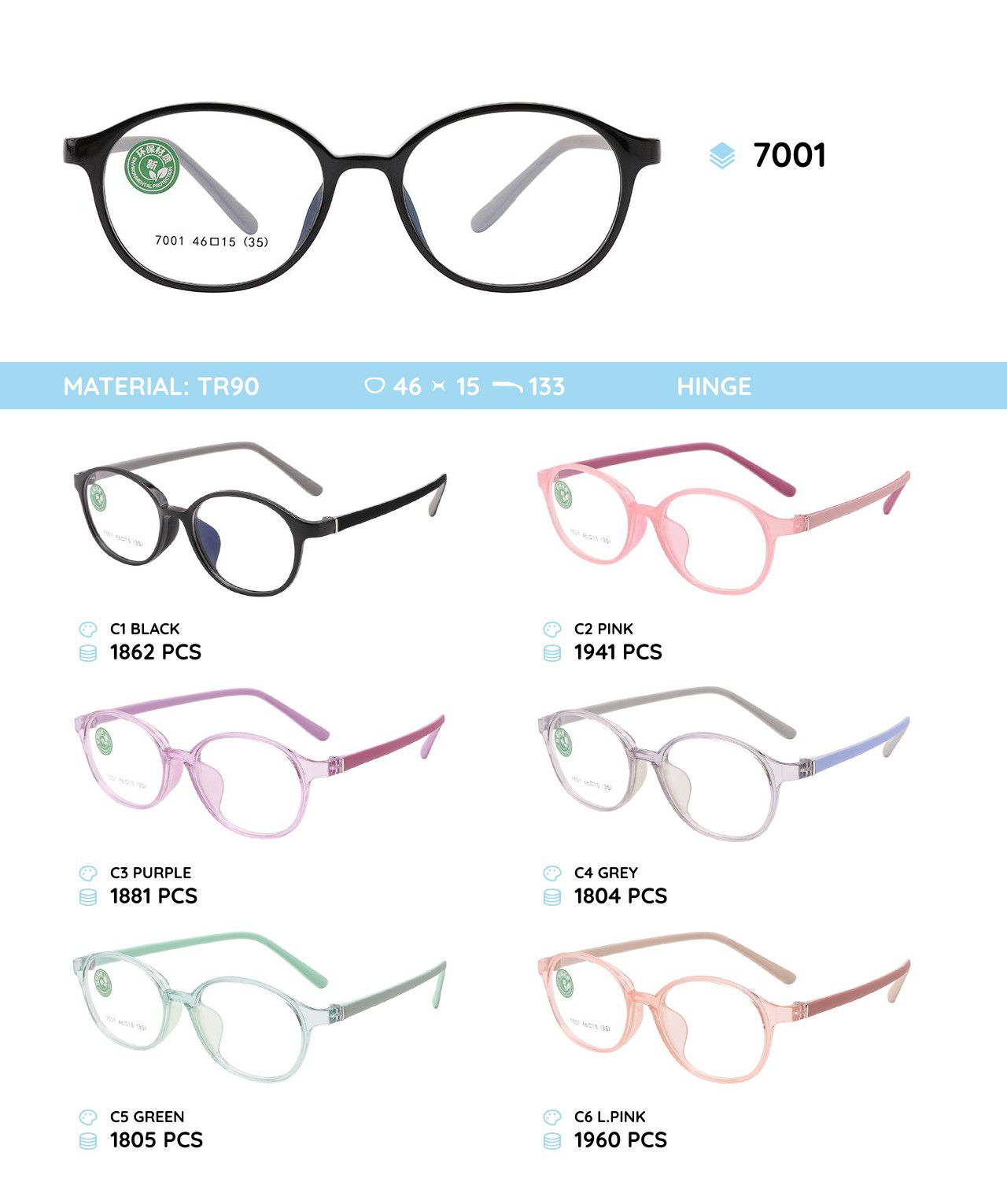 Оправа для очков пластиковая из материала TR90 детская 7001TR