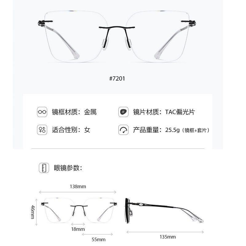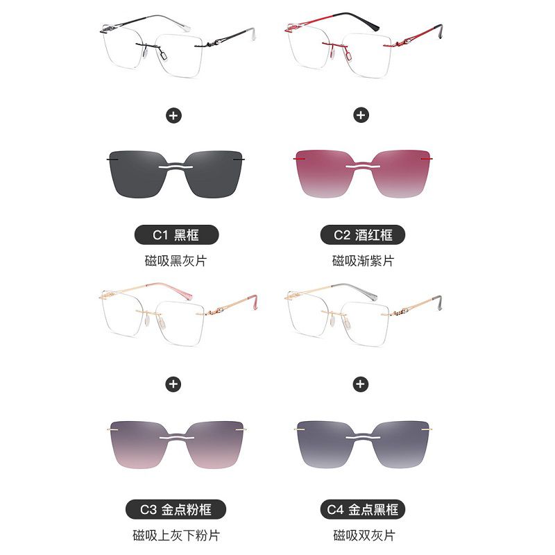 Оправа безрамочная металлическая женская + магнитная солнцезащитная насадка (клипон) 7201-GT