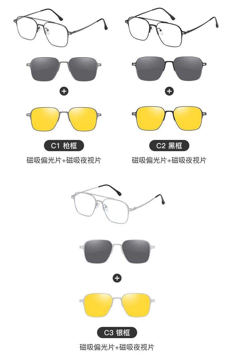 Оправа металлическая с защитой от синего света + 2 магнитные солнцезащитные насадки (клипон) 7601-GT
