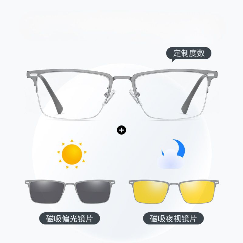 Оправа металлическая с защитой от синего света + 2 магнитные солнцезащитные насадки (клипон) 7653-GT