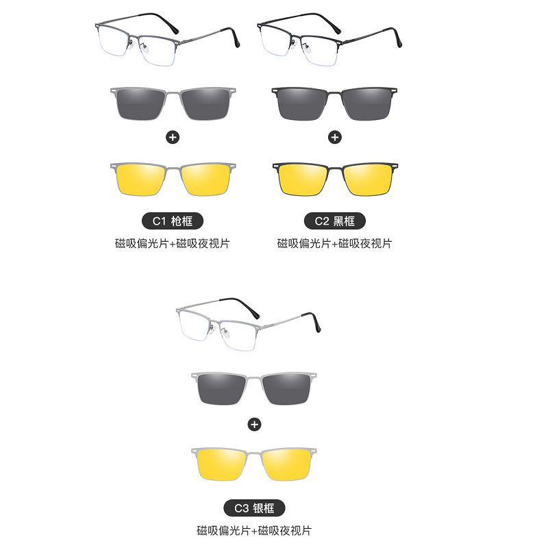 Оправа металлическая с защитой от синего света + 2 магнитные солнцезащитные насадки (клипон) 7651-GT