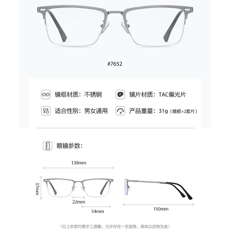 Оправа металлическая с защитой от синего света + 2 магнитные солнцезащитные насадки (клипон) 7652-GT