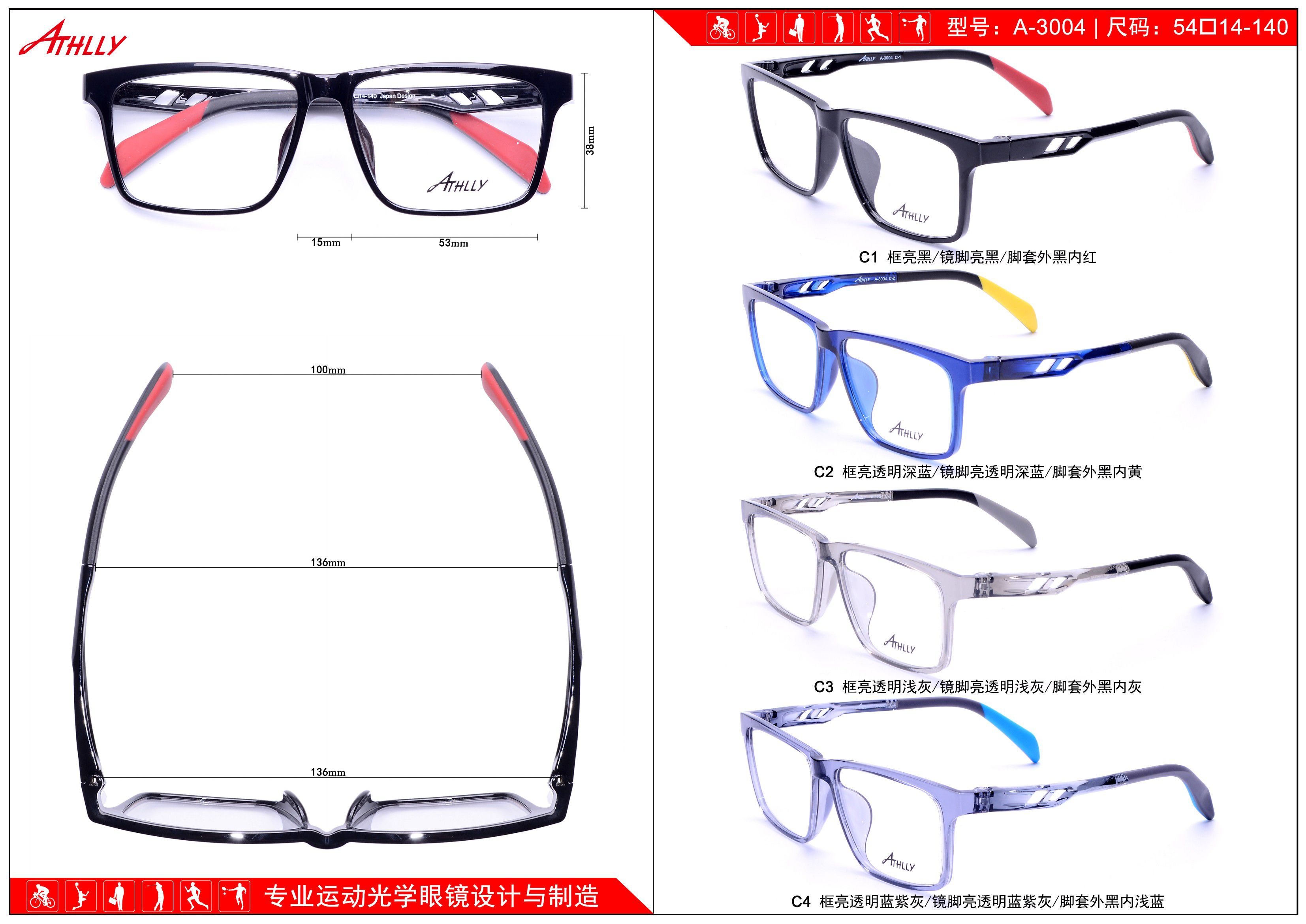 Оправа спортивная пластиковая из материала TR90 Athlly A-3004 (скидки см. в таблице)