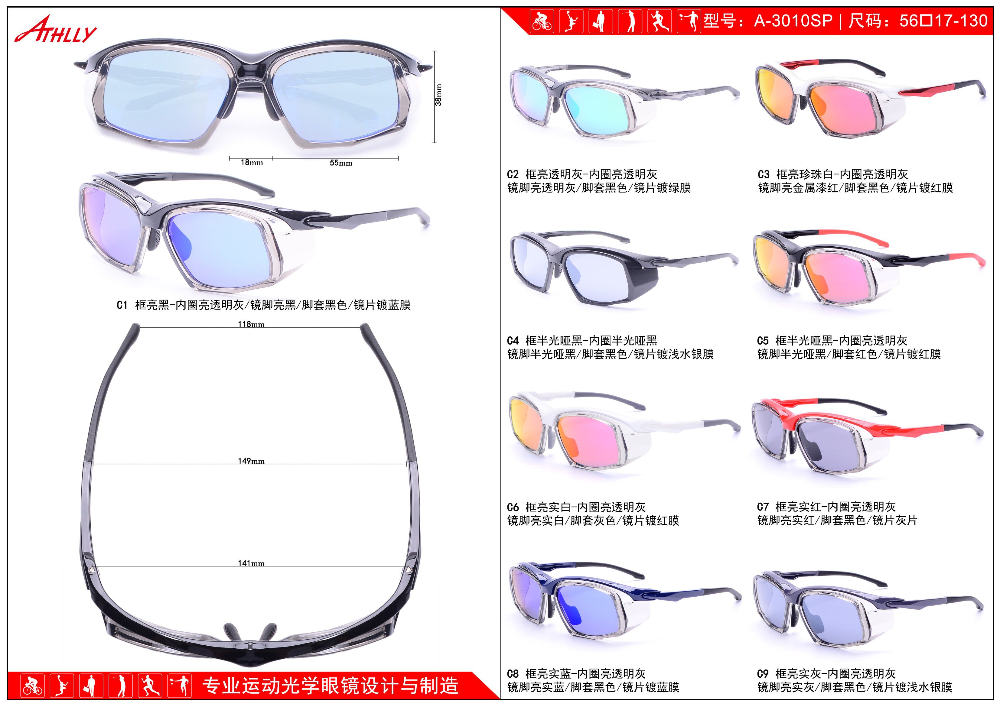 Оправа спортивная пластиковая для велосипедистов и активного отдыха с солнцезащитными линзами Athlly A-3010SP (скидки см. в таблице)