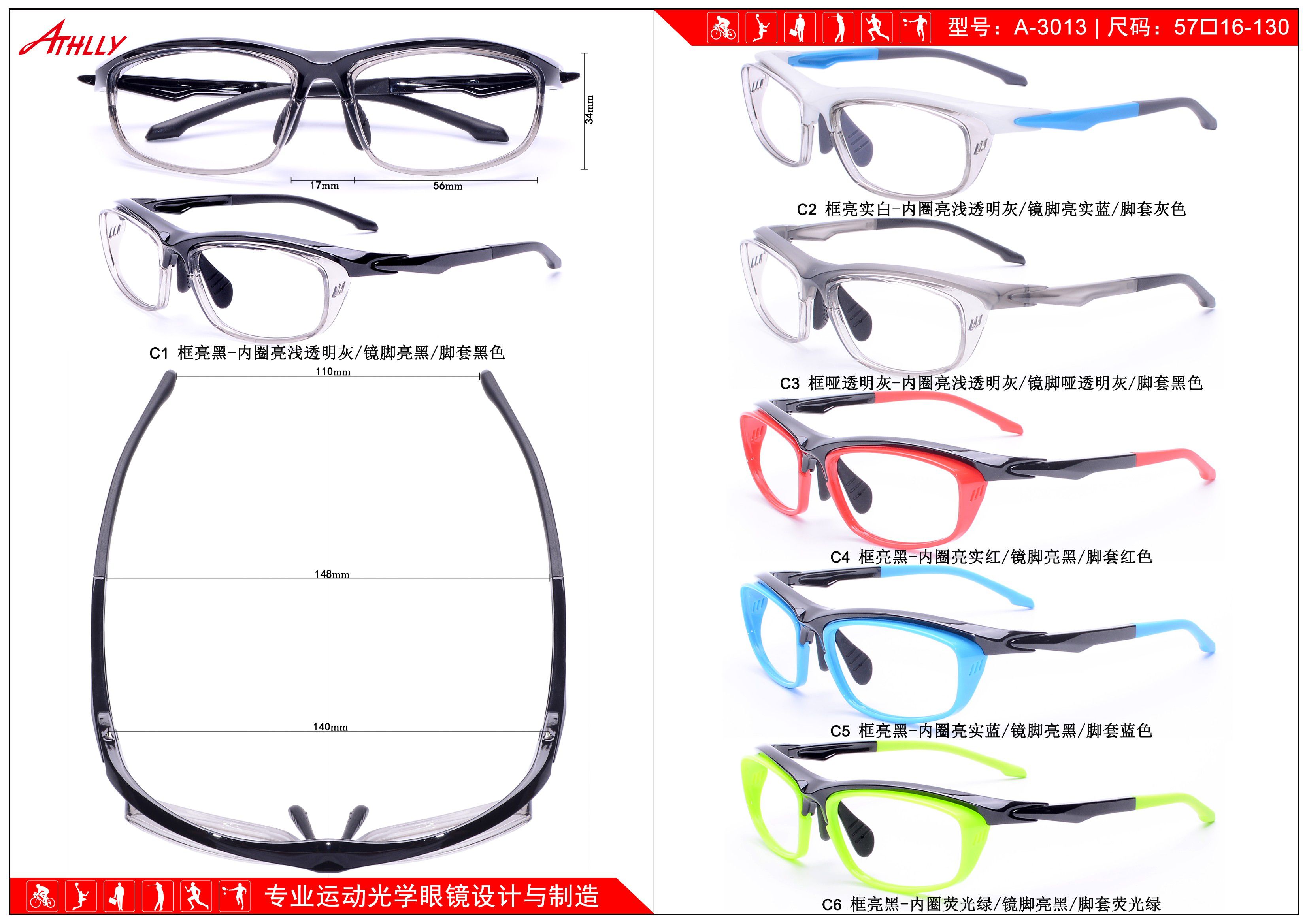 Оправа спортивная пластиковая для велосипедистов и активного отдыха Athlly A-3013 (скидки см. в таблице)