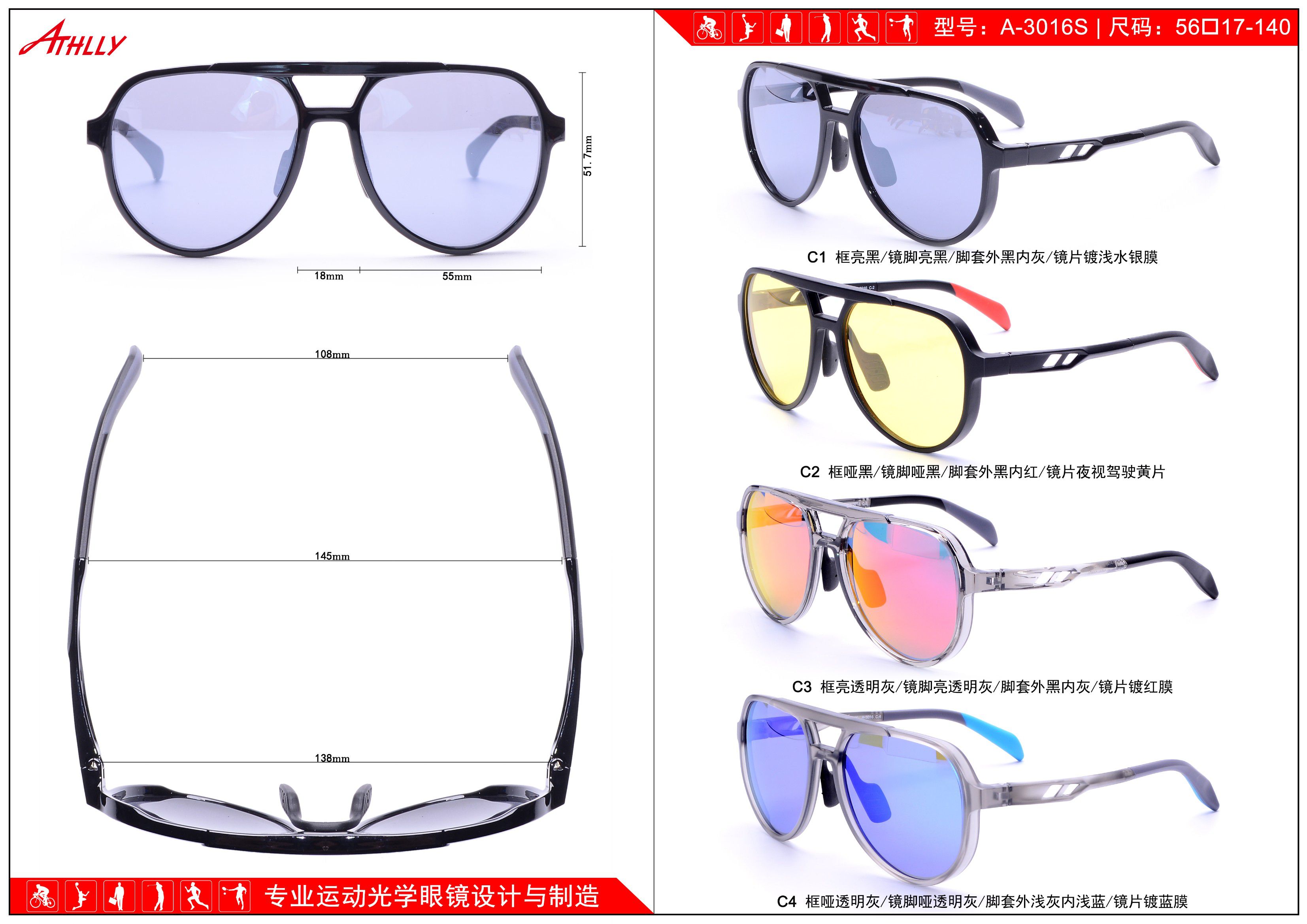 Оправа спортивная пластиковая из материала TR90 с солнцезащитными линзами Athlly A-3016S (скидки см. в таблице)