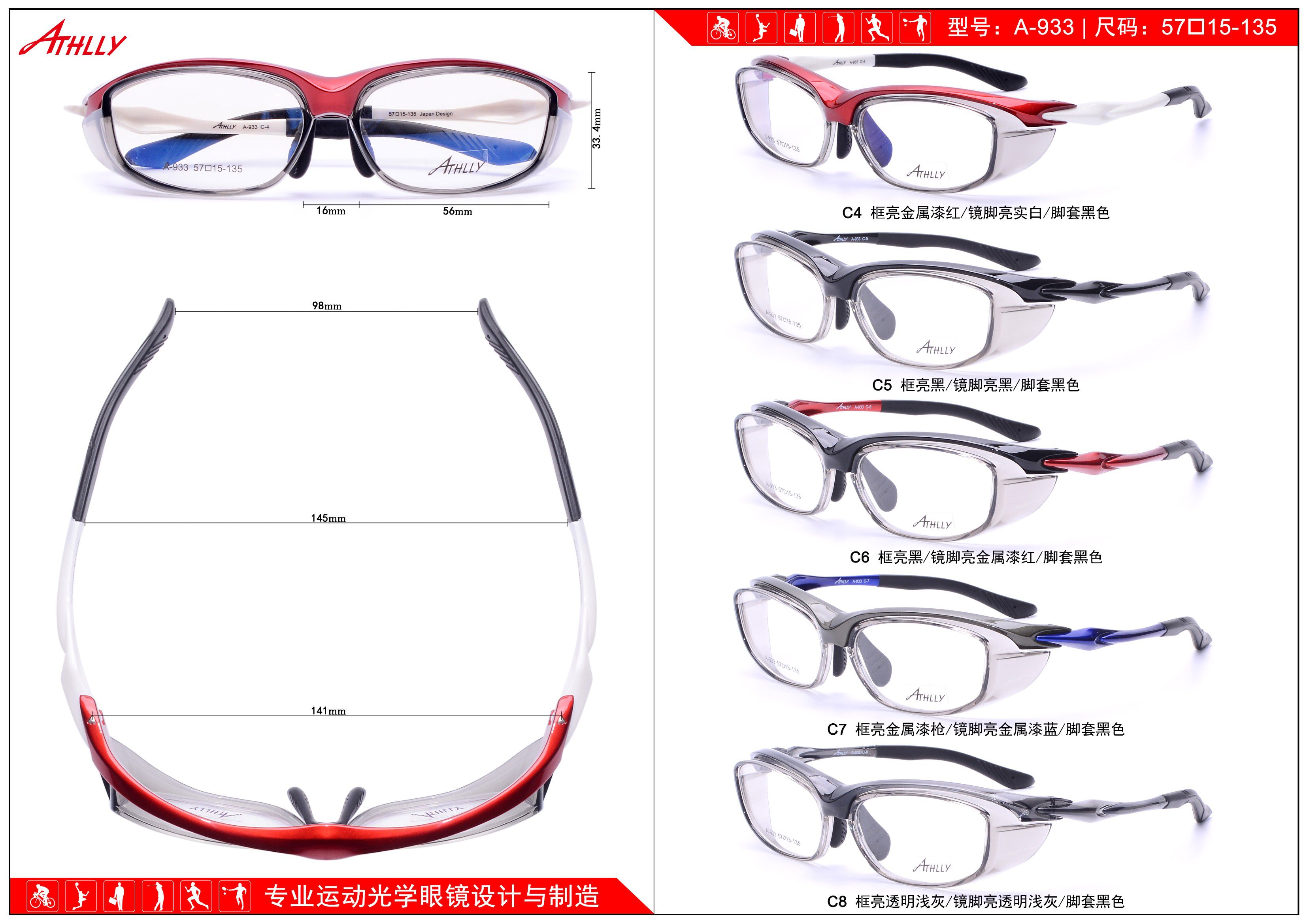 Оправа спортивная пластиковая для велосипедистов и активного отдыха Athlly A-933 (скидки см. в таблице)