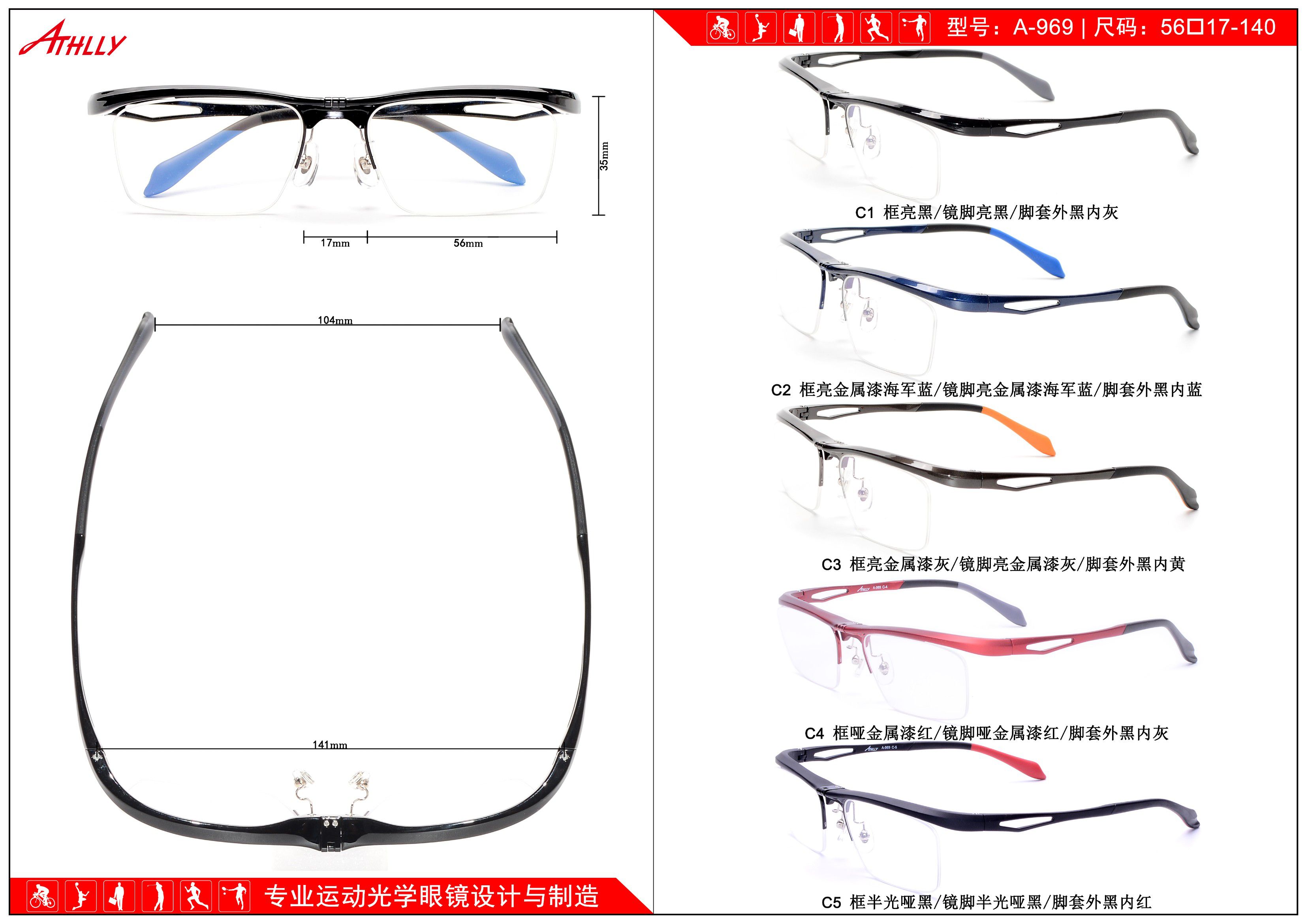 Оправа спортивная пластиковая сверхлёгкая безободковая Athlly A-969 (скидки см. в таблице)