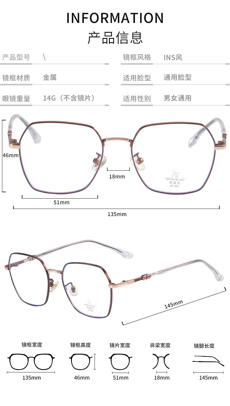 Оправа металлическая с линзами Blue Ray Cut MAMO B26105