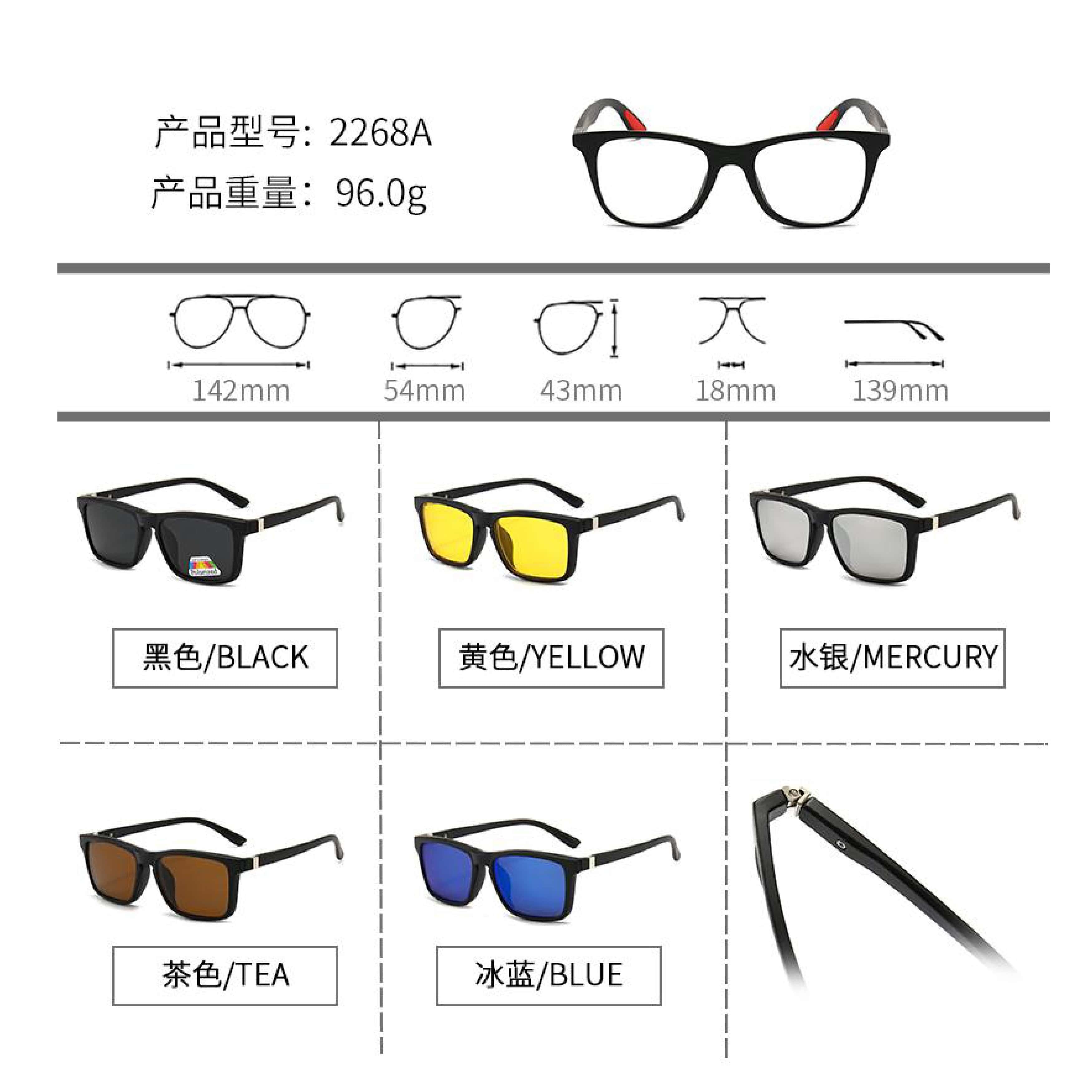 Оправа El Dorado с комплектом поляризационных солнцезащитных насадок (клипон) на магните 2268A (5 штук)