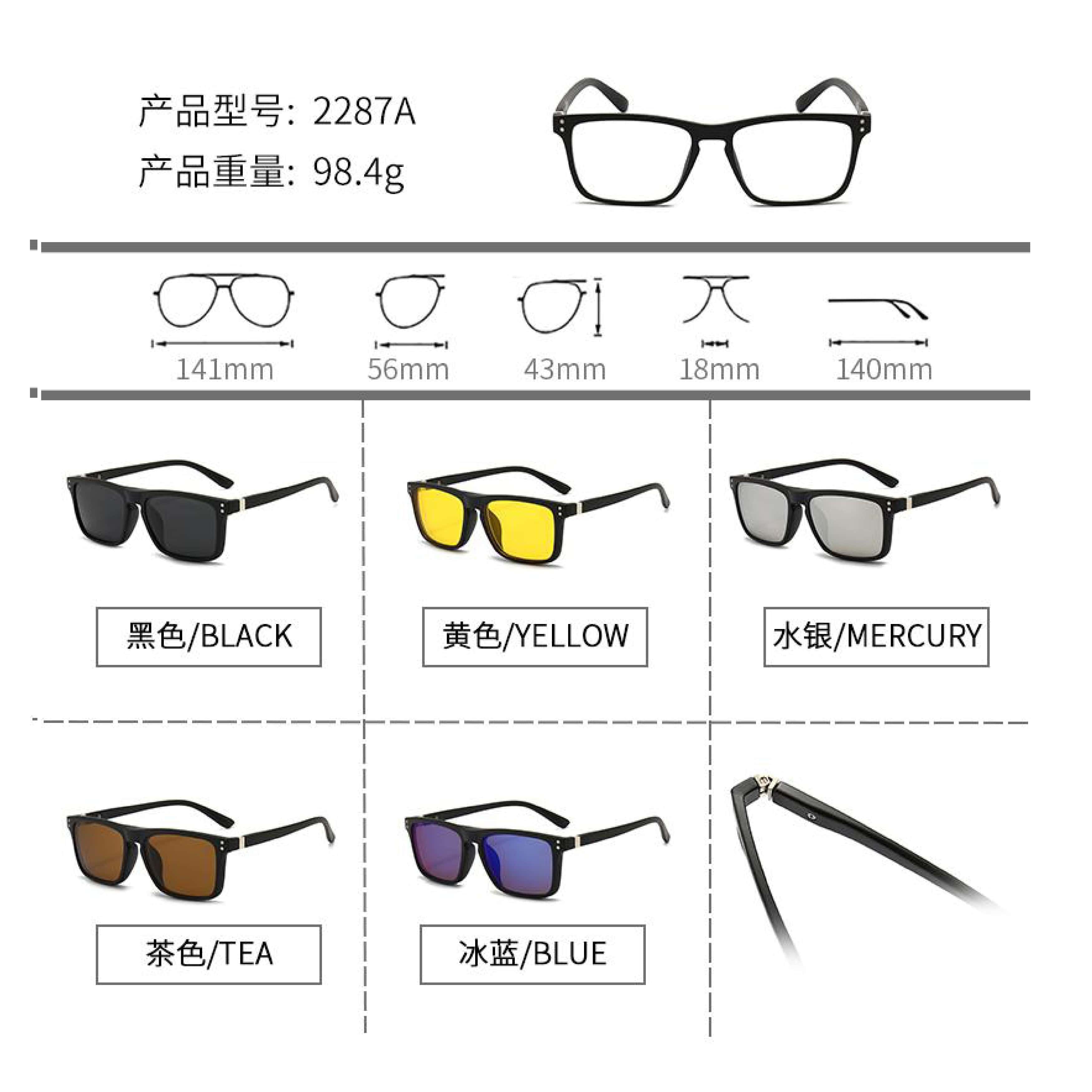 Оправа El Dorado с комплектом поляризационных солнцезащитных насадок (клипон) на магните 2287A (5 штук)