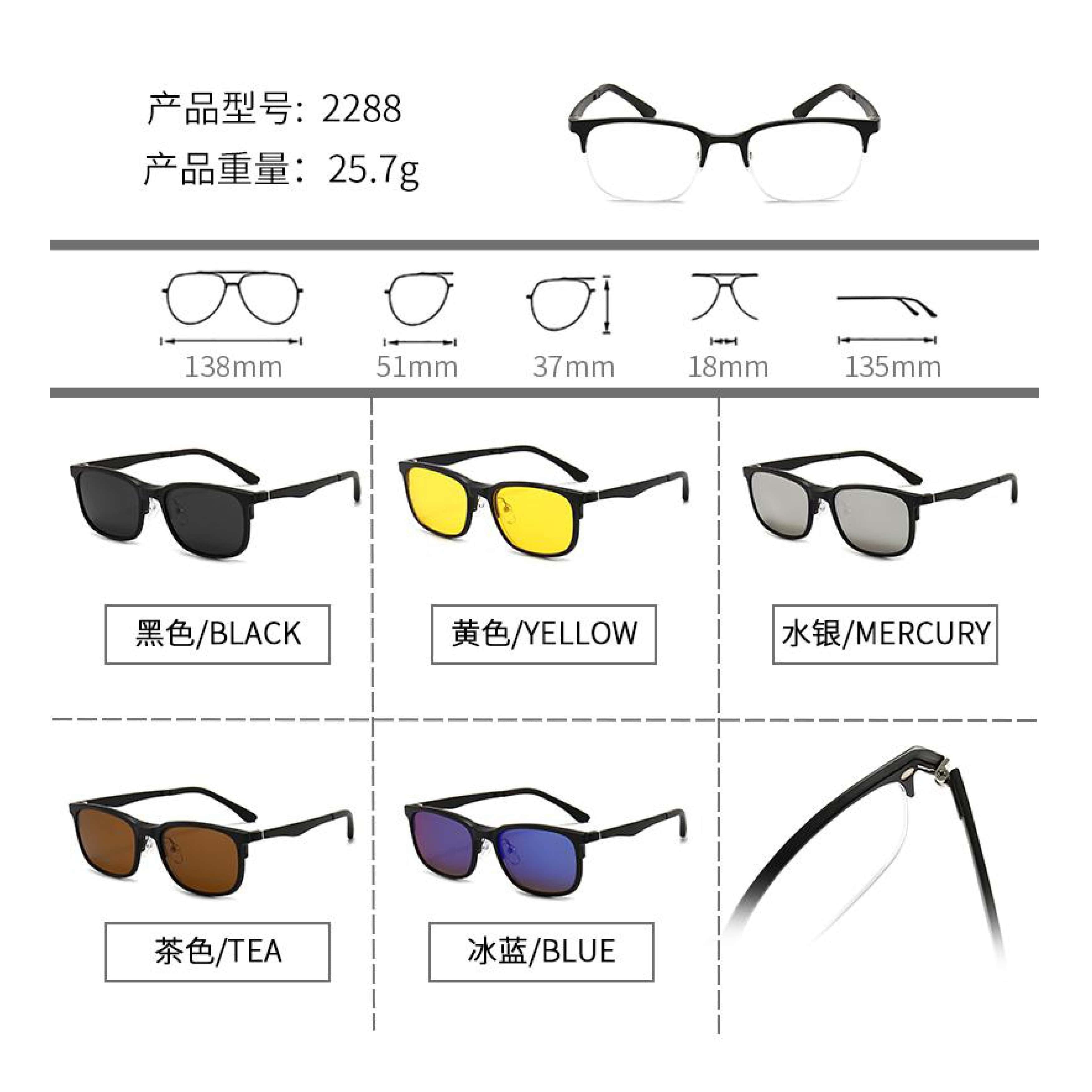 Оправа El Dorado с комплектом поляризационных солнцезащитных насадок (клипон) на магните 2288 (5 штук)