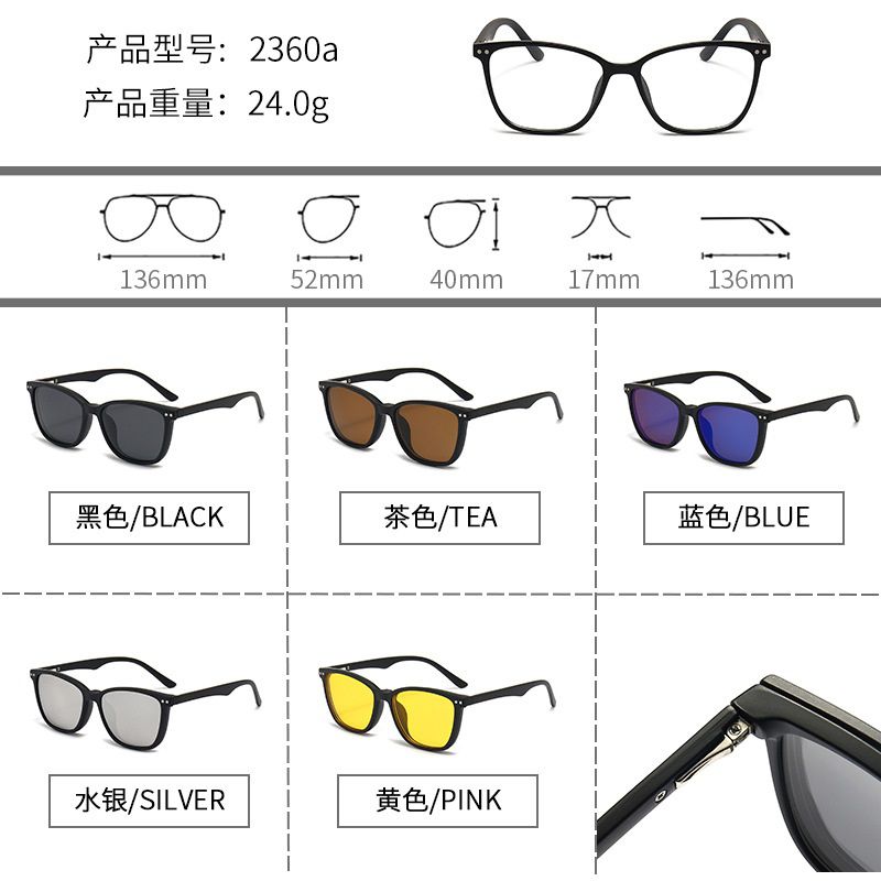 - Комплект: оправа пластиковая + 5 солнцезащитных насадок + кожаная сумка