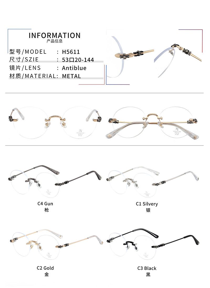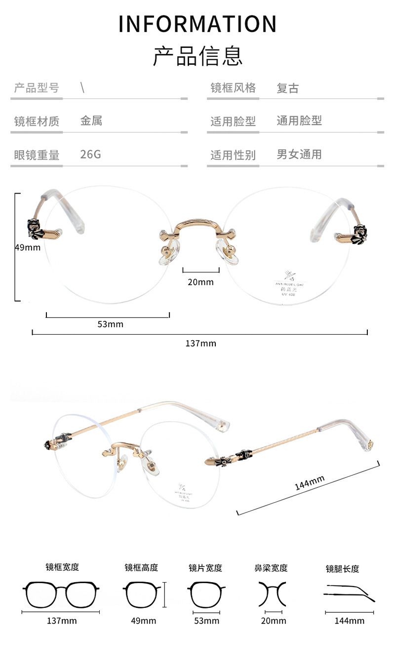 Оправа безободковая металлическая с линзами Blue Ray Cut MAMO H5611