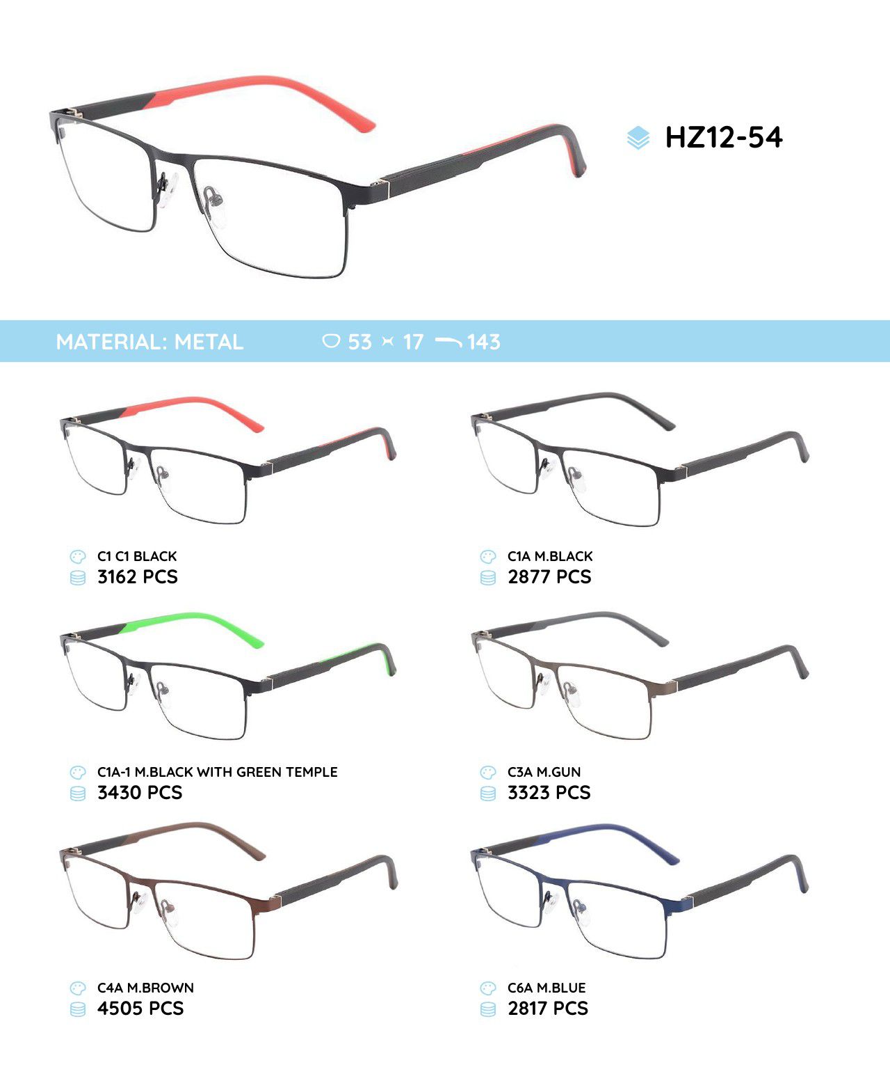 Металлическая оправа с дужками из материала TR-90 HZ12-54