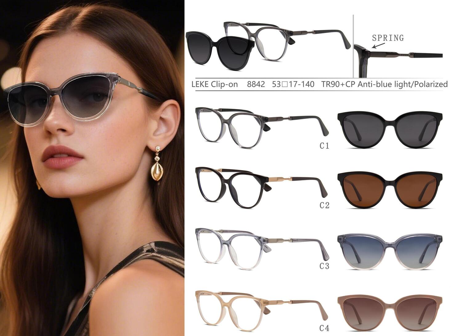 Оправа для очков пластиковая TR90+CP с защитой от синего света, с флексом + поляризационная солнцезащитная насадка (клипон) Leke LK8842