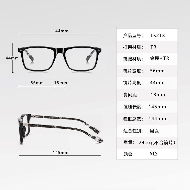 Оправа мужская пластиковая из материала TR90 + металл, линзы с защитой от ультрафиолета и синего света More LS218
