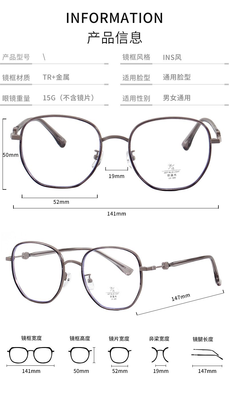 - Материал оправы: пластик TR90 + металл