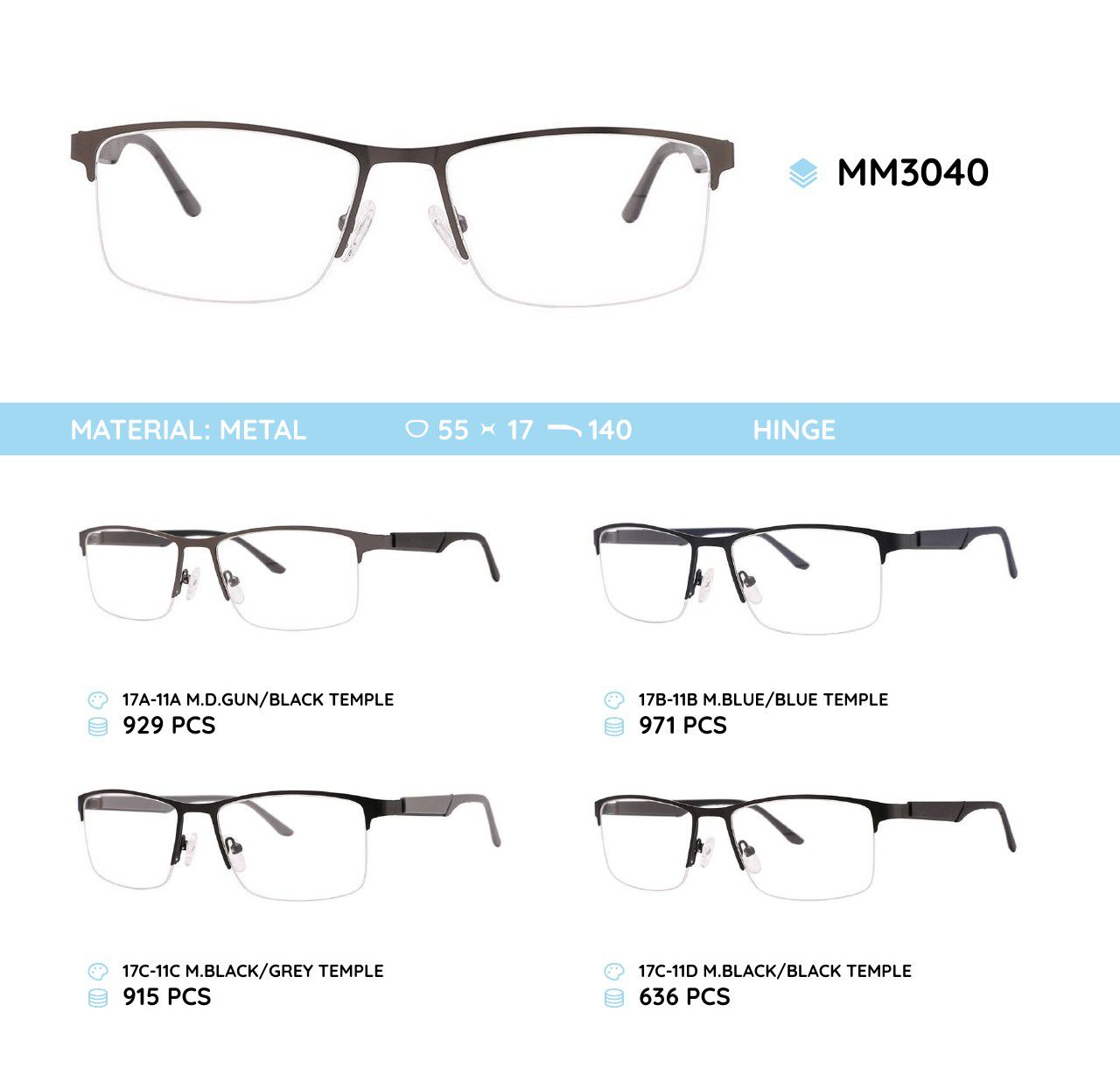 Оправа для очков металлическая мужская полуободковая MM3040