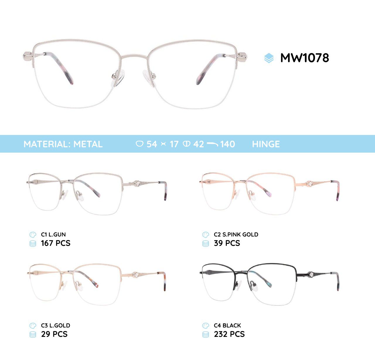 Оправы для очков металлические. Материал - нержавеющая сталь. Оправы хорошо держат свою форму, в тоже время эластичны в работе при изготовлении очков, высокого качества, имеет приятные тактильные свойства, устойчивы к повреждениям, легки, обладают гипоаллергенными свойствами. Многие модели декорированы стразами, с элегантными заушниками и флексами (flex hinges). Модный дизайн. Данная коллекция оправ высокого качества, проходит штучный контроль. В нашем магазине дана низкая цена на товар данной категории, для оптовой продажи. Стандарт CE (европейский стандарт качества).