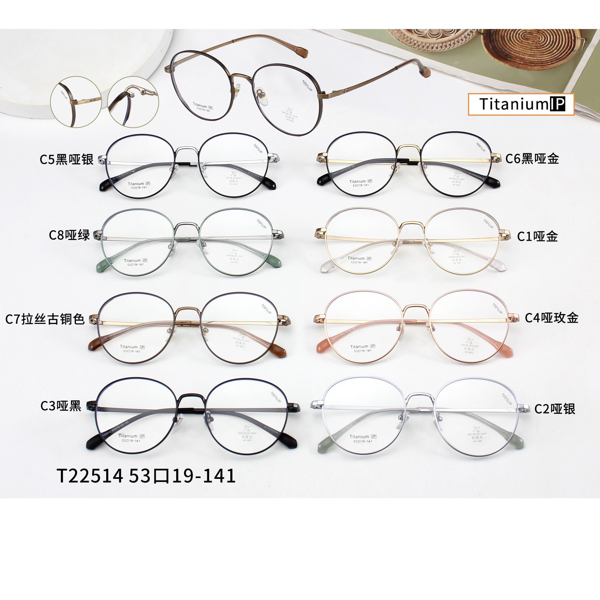 Оправа сверхлёгкая титановая + пластик с линзами с защитой от синего света TR90 MAMO T22514