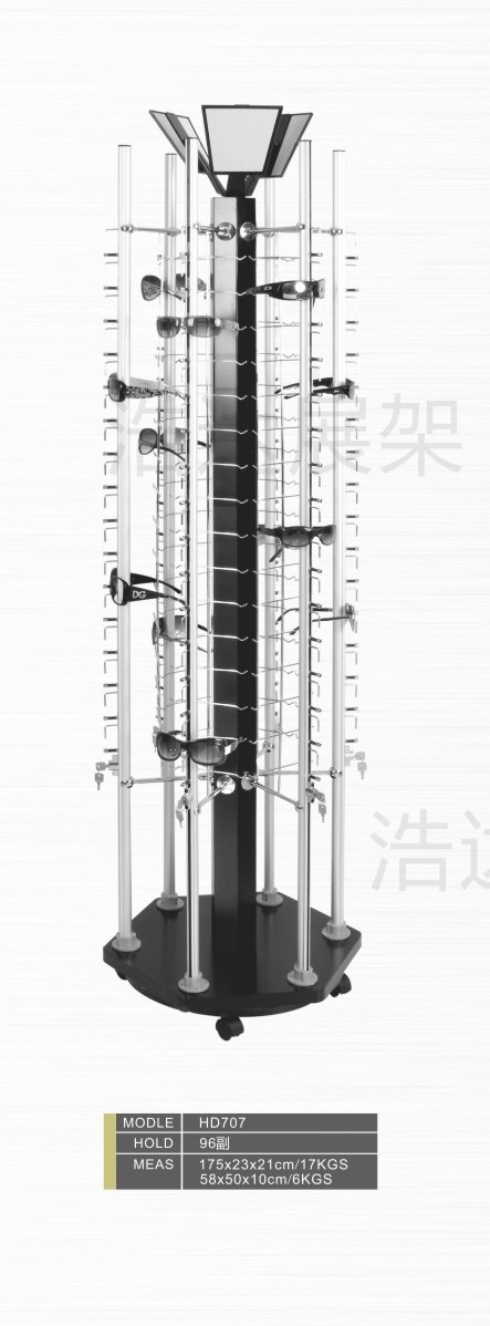 Glasses rotating floor stand with 96 slots, mirrors and locks HD707