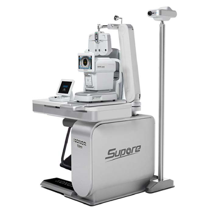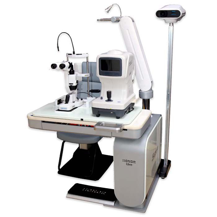 Модель включает в себя всё необходимое для проведения офтальмологических обследований. Удобная столешница с подъёмным и поворотным механизмами. В верхней части рабочего места офтальмолога располагается лампа, угол наклона которой можно изменять. Для закрепления фороптера и проектора предусмотрены встроенные кронштейны. В комплект входит универсальное кресло, угол наклона спинки которого может быть отрегулирован с помощью электропривода. Имеется вспомогательный столик для размещения компьютеров и другого оборудования.