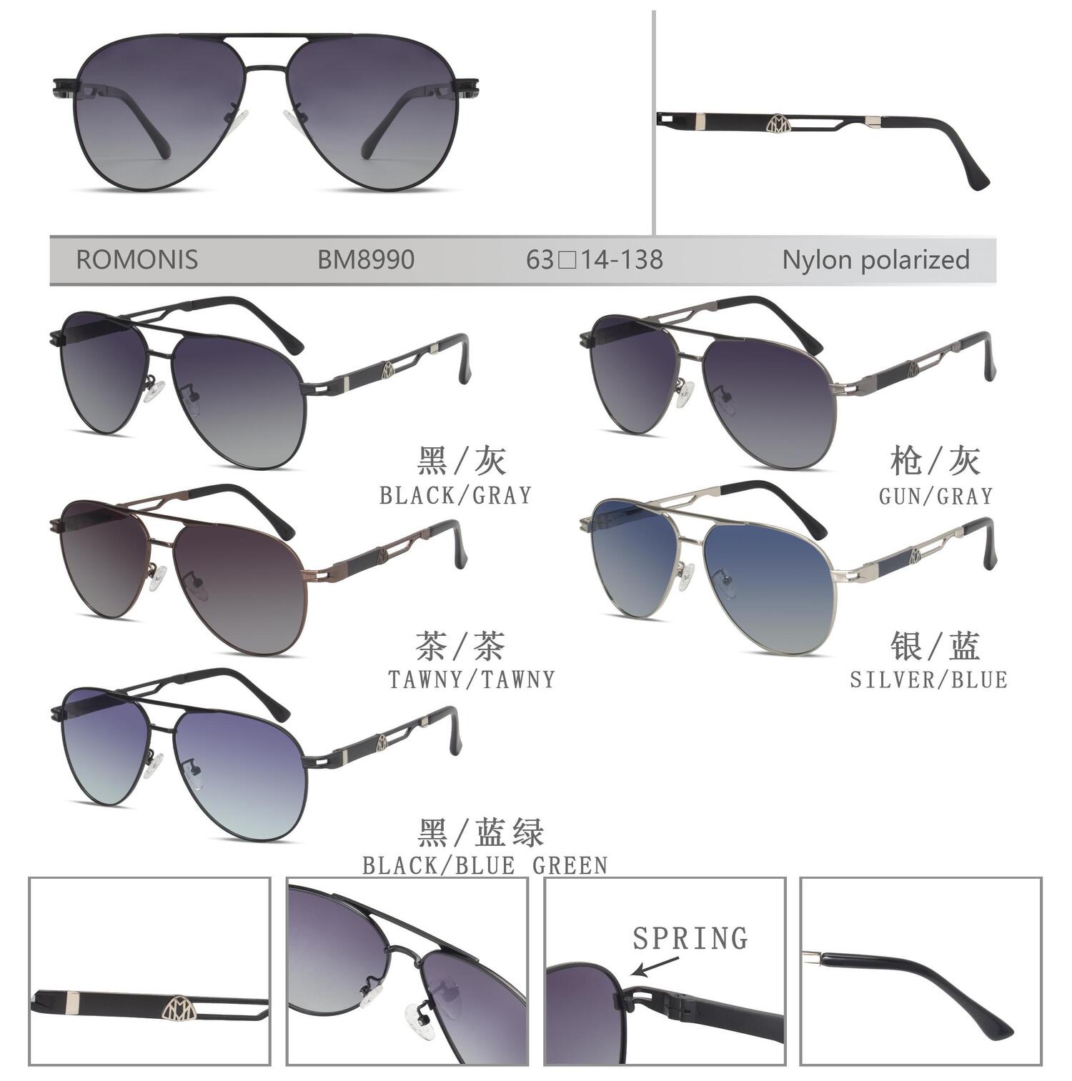 Polarized metal sunglasses with spring hinges and nylon lenses for men Romonis BM8990-R