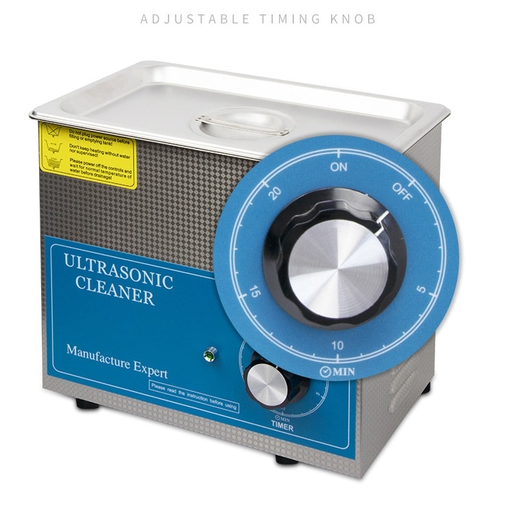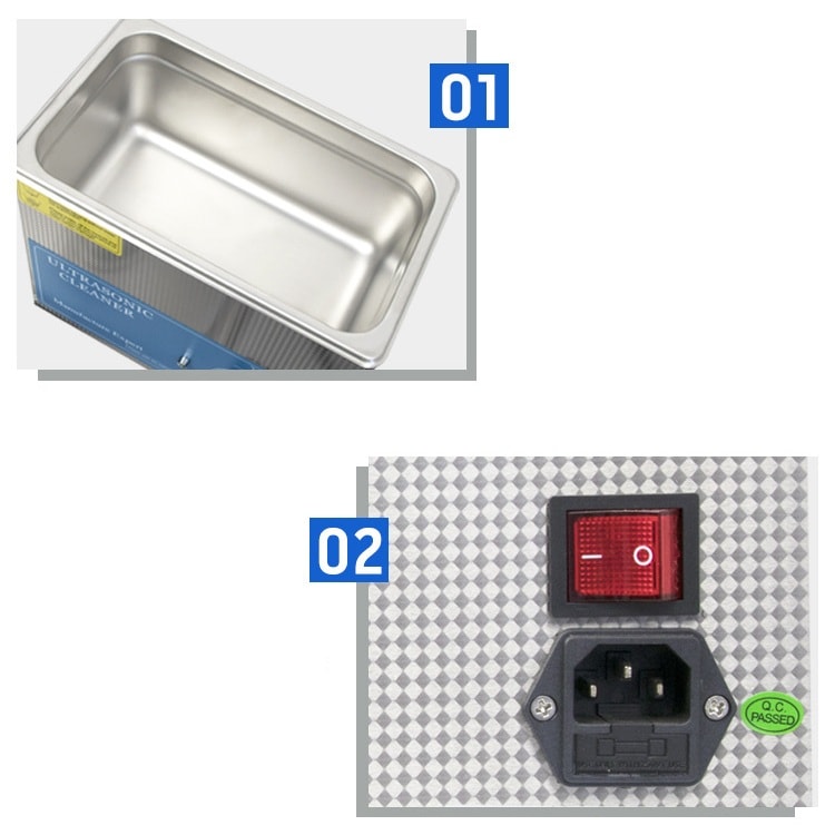 Ultrasonic cleaner for eyeglass frames, metal products and jewelry. The cleaner has one switch and one indicator corresponding to the switch, making it easy to operate the ultrasonic wave cleaning machine. It is used for cleaning any materials, you can choose the cleaning time.