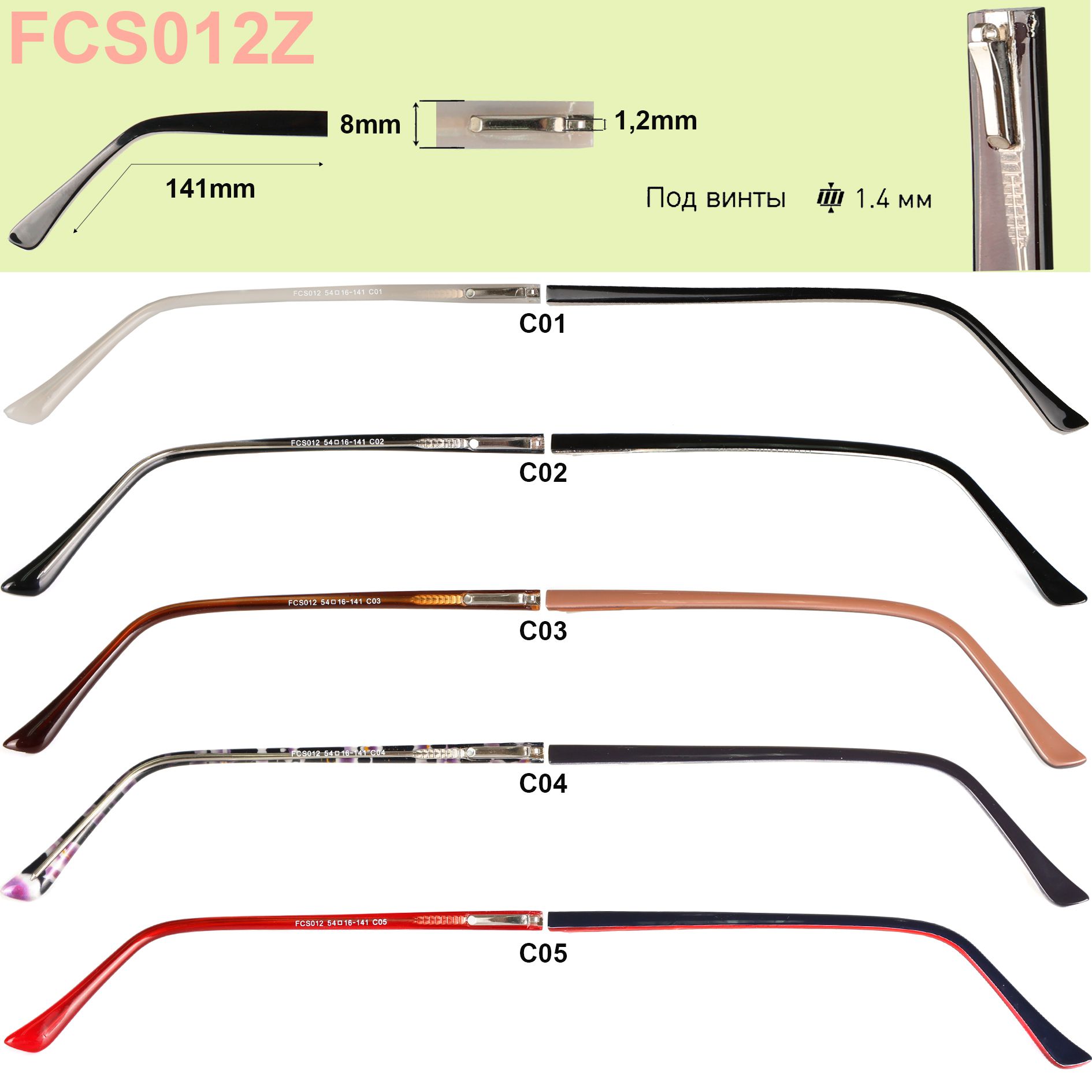 Заушник (дужка) пластиковый с флексом FCS012Z (цена за пару) длина 141мм, ширина 8мм